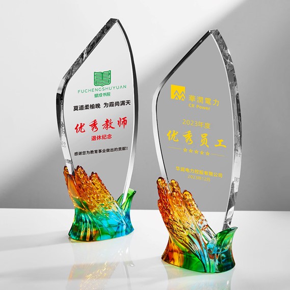 这款奖杯设计来源自对劳动与收获的敬意,底部是以手托着一束麦穗来呈现,象征着劳动与智慧的结合。透明水晶部分是一个大米粒造型,代表着丰收的喜悦和成果的丰硕,整体设计意在呈现获奖者在行业中的卓越贡献,以及劳动和科技的完美融合,象征着丰收与成就的荣耀。